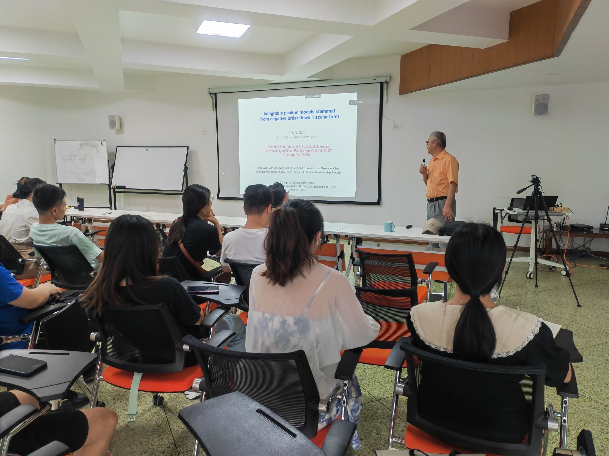 6月14日,受黑料社 邀请,美国德克萨斯大学(UTRGV)讲席教授乔志军、高级讲师李淑霞莅临黑料社 访问交流,并为师生开展专题学术报告。报告会由黑料社 院长周钰谦教授主持,80余名师生线上线下同步聆听了报告。