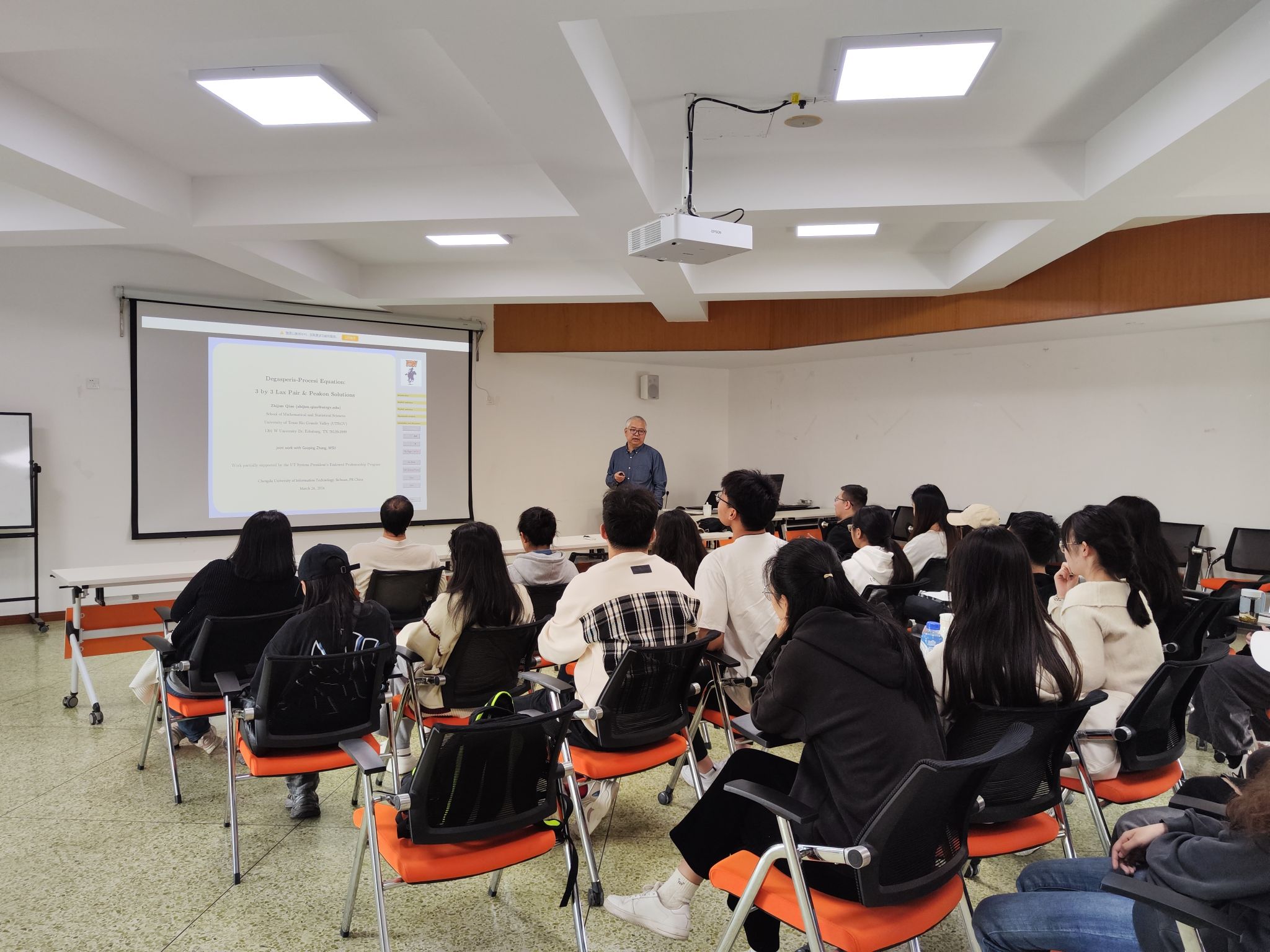 3月26日下午,美国德克萨斯大学(UTRGV)乔志军教授应学院邀请在信息楼六楼多功能厅做了题为“DP equation and 3 by 3 Lax pair”的学术报告,报告由学院院长周钰谦教授主持,部分教师、研究生参加了本次报告会。
