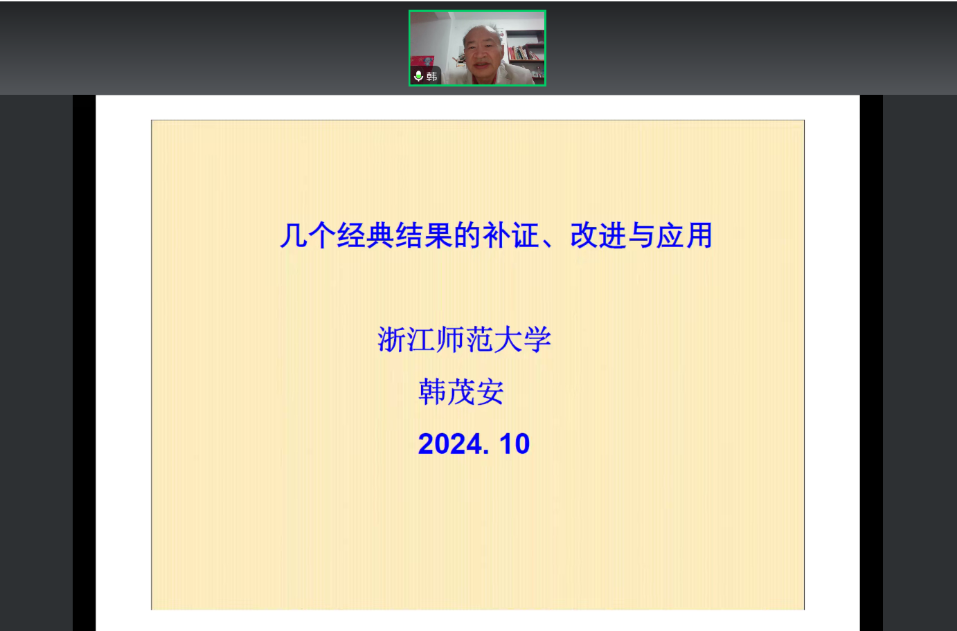 邀请,知名学者韩茂安教授做了题为《几个经典结果的补正、改进与应用》的线上讲座,讲座由学院院长周钰谦教授主持,学院部分教师和研究生在线上参加了本次讲座。