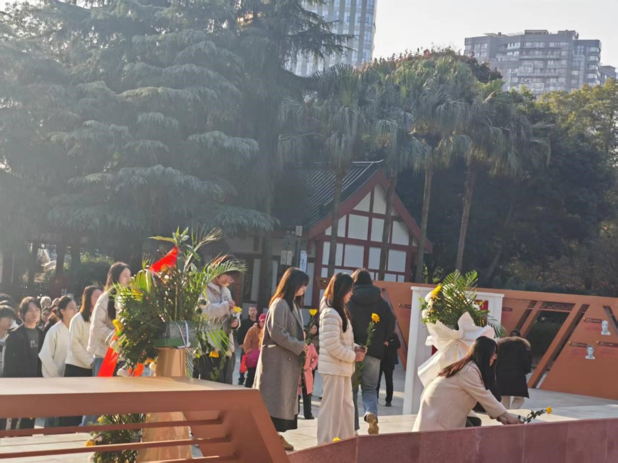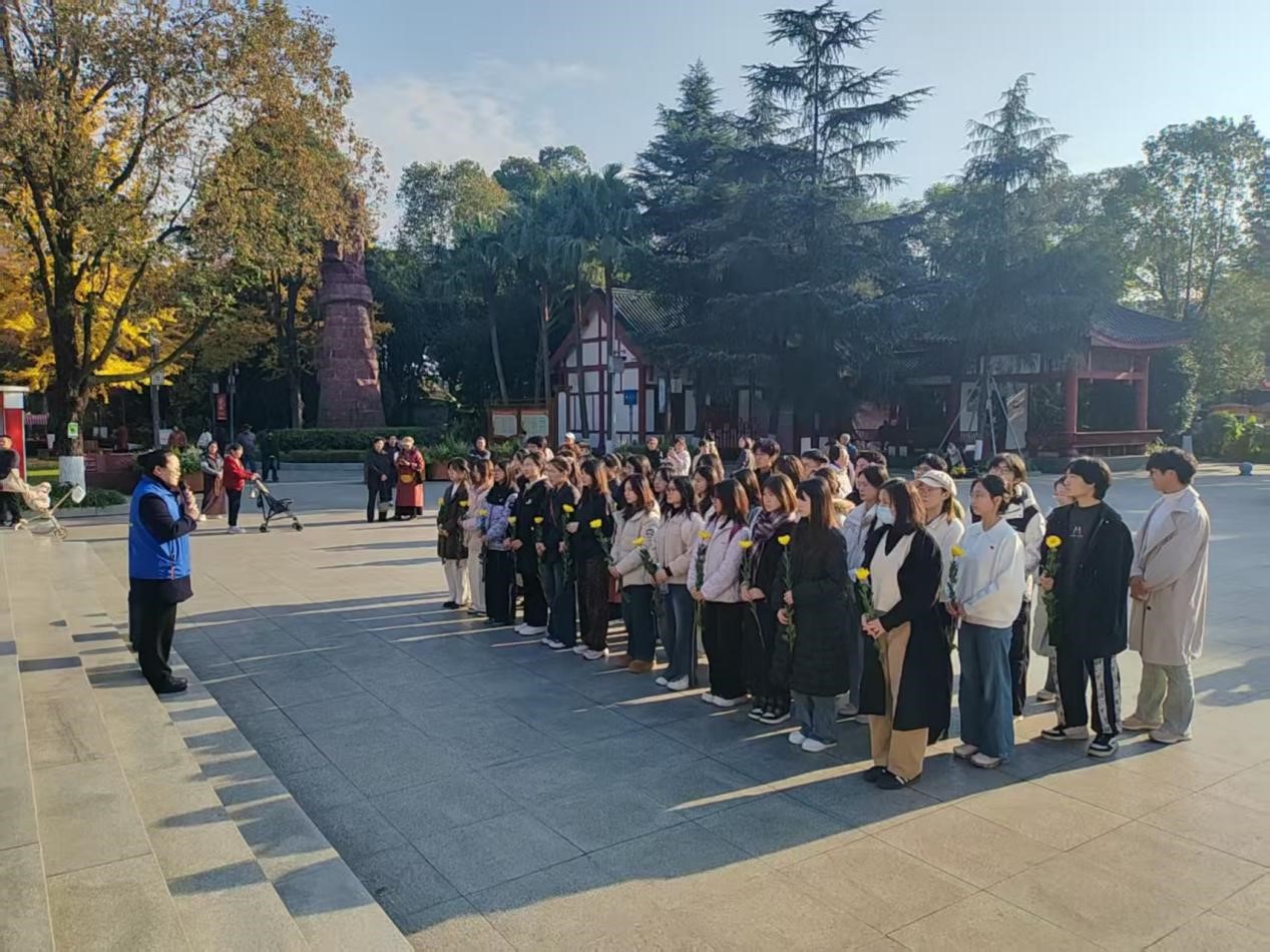 党委组织近40名学生党员和部分入党积极分子在党支部书记曾凤娇、唐智慧同志带领下,满怀敬意地前往成都市十二桥烈士墓开展以“缅怀先烈赓续血脉 坚定信念践行初心”为主题的党日活动。