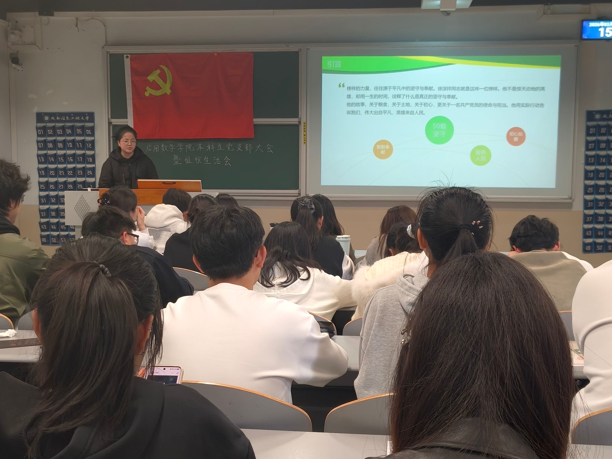 本科生党支部“青年党员说”第二期活动如期开展。本期活动聚焦党员初心使命与榜样精神传承,梁海洲、张玲两位青年党员代表依次登台分享,引导青年党员在思想碰撞中深化理论认知、凝聚奋进力量,切实将学习成果转化为担当作为的实际行动。