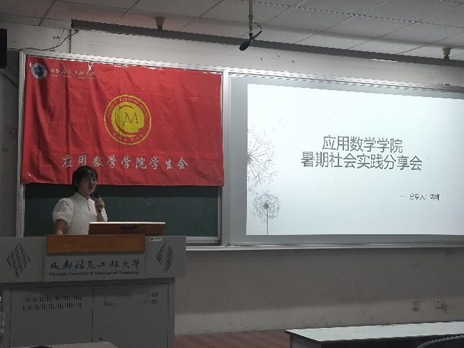 陈珊同学结合自身经历,从公益支教、气象防灾减灾、暑期社会实践三个活动方向展开分享。她不仅通过图文结合的方式进行讲述,还播放了三段她本人参加社会实践的视频,让同学们在观看视频的同时了解暑期社会实践,大家都受益匪浅,心驰神往。