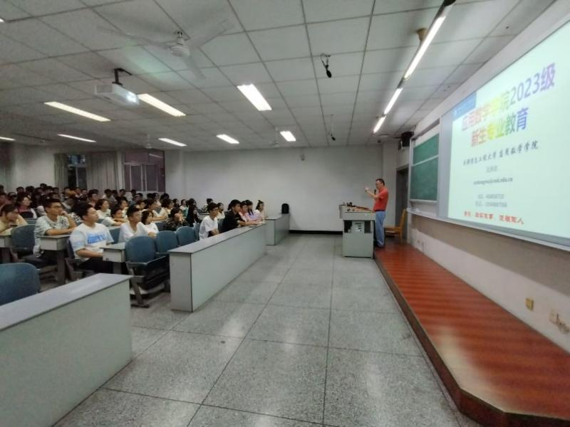 副院长吴泽忠主讲,2023级辅导员曾凤娇、张秋敏和2023级全体新生参加。
