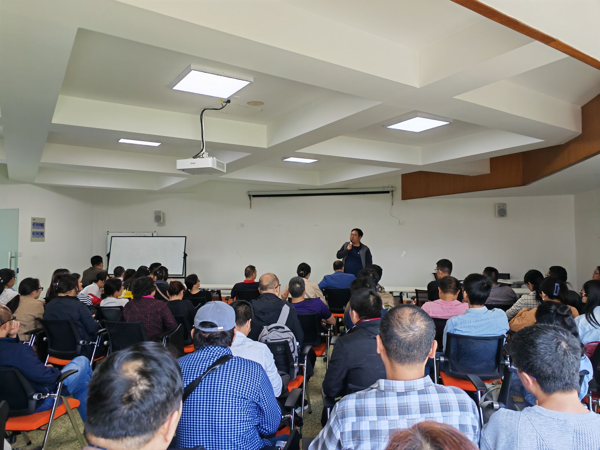 全体教师参会学习,会议由党委书记李明主持。