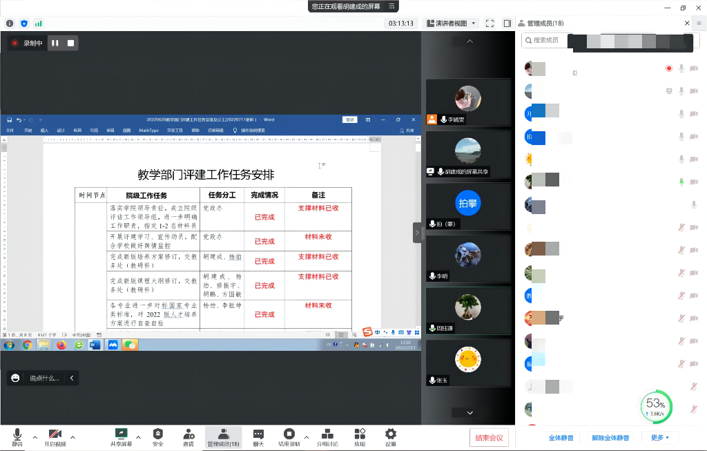 7月17日上午,由于疫情因素,学院原定线下召开的本科教学审核评估工作会议改为线上工作会议。学院党委书记李明、院长周钰谦、副院长吴泽忠、副院长胡建成、各系教学中心主任,党政办教务办学生科相关人员参加会议。胡建成主持会议。