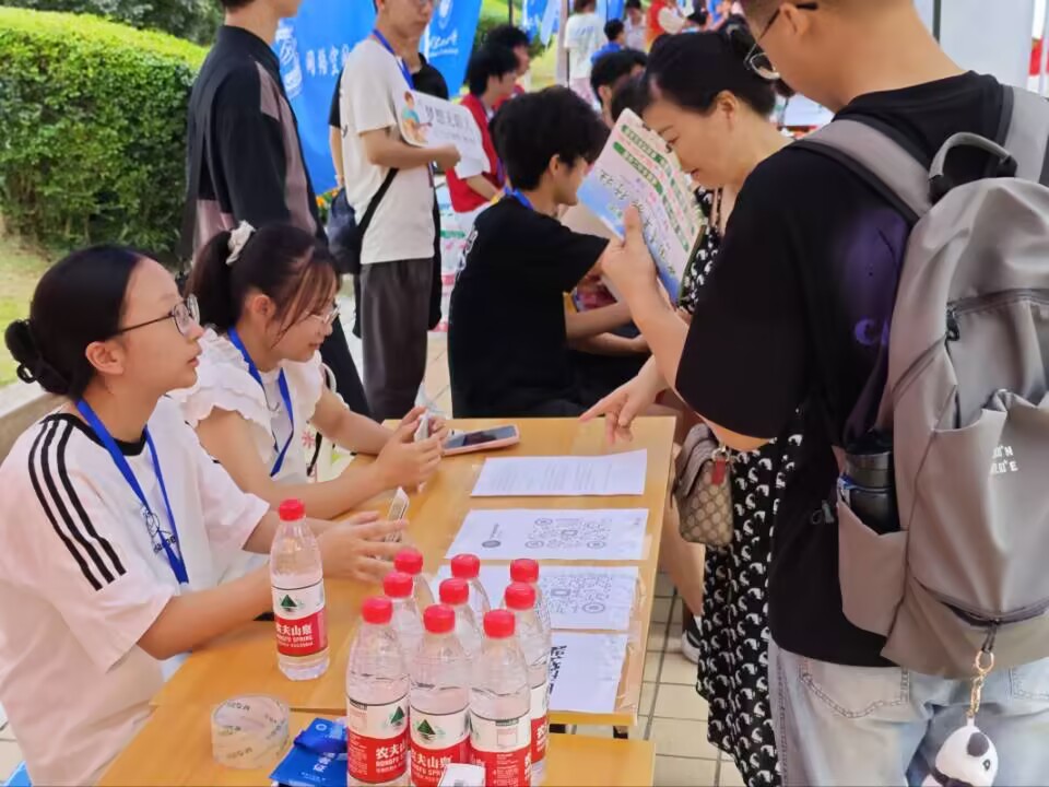 在学校的统一组织,精心安排下,校门口布置了迎新站点,为初来乍到的新生指引方向。即便烈日当空,热浪滚滚,也无法阻挡志愿者们如火的热情与坚定的信念。他们面带微笑,耐心解答新生们的疑问,细心分发学校地图,亲自带领他们踏上前往宿舍、信息楼等地完成报道。在信息楼新生报到处,志愿者们有序组织新生完成签字确认、采集头像、领取学生手册、发放军训服装等报道流程,现场秩序良好,引得家长们连连夸赞。此外,‌志愿者们还精心设置签名墙,邀请新生及家长签名并合影留念,‌为他们留下了难忘的入学纪念。