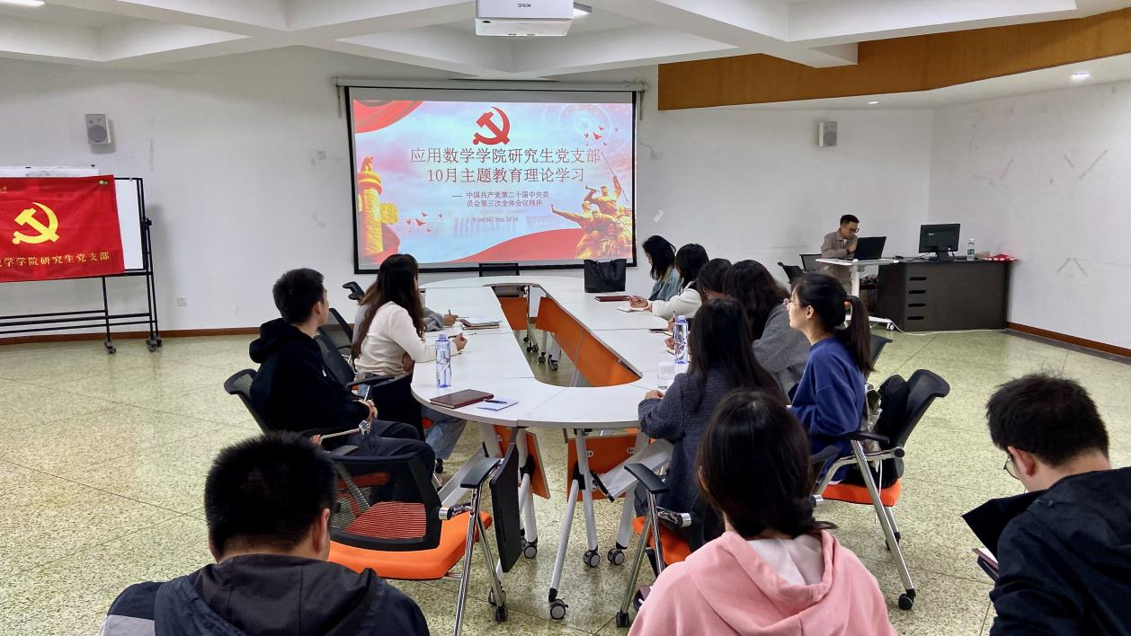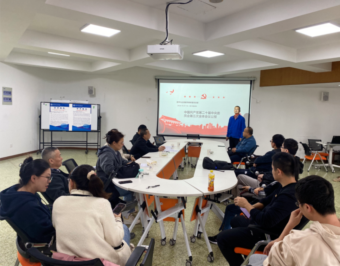 研究生党支部于10月30日在信息楼六楼学院会议厅召开专题学习。支部书记熊渠主持,全体研究生党员参加。熊渠会议的主要内容作了详细讲解,他强调,研究生党员应将全会精神落实到具体行动中,并自觉做到加强理论学习与实践相结合;坚定政治立场,做到知行合一;科研创新服务国家需求,将科研成果转化为社会价值。研究生党员应致力于将研究成果服务于社会,通过科研创新解决实际问题,推动社会进步和国家发展。支部鼓励党员参与社会服务项目,以科研成果积极回馈社会。