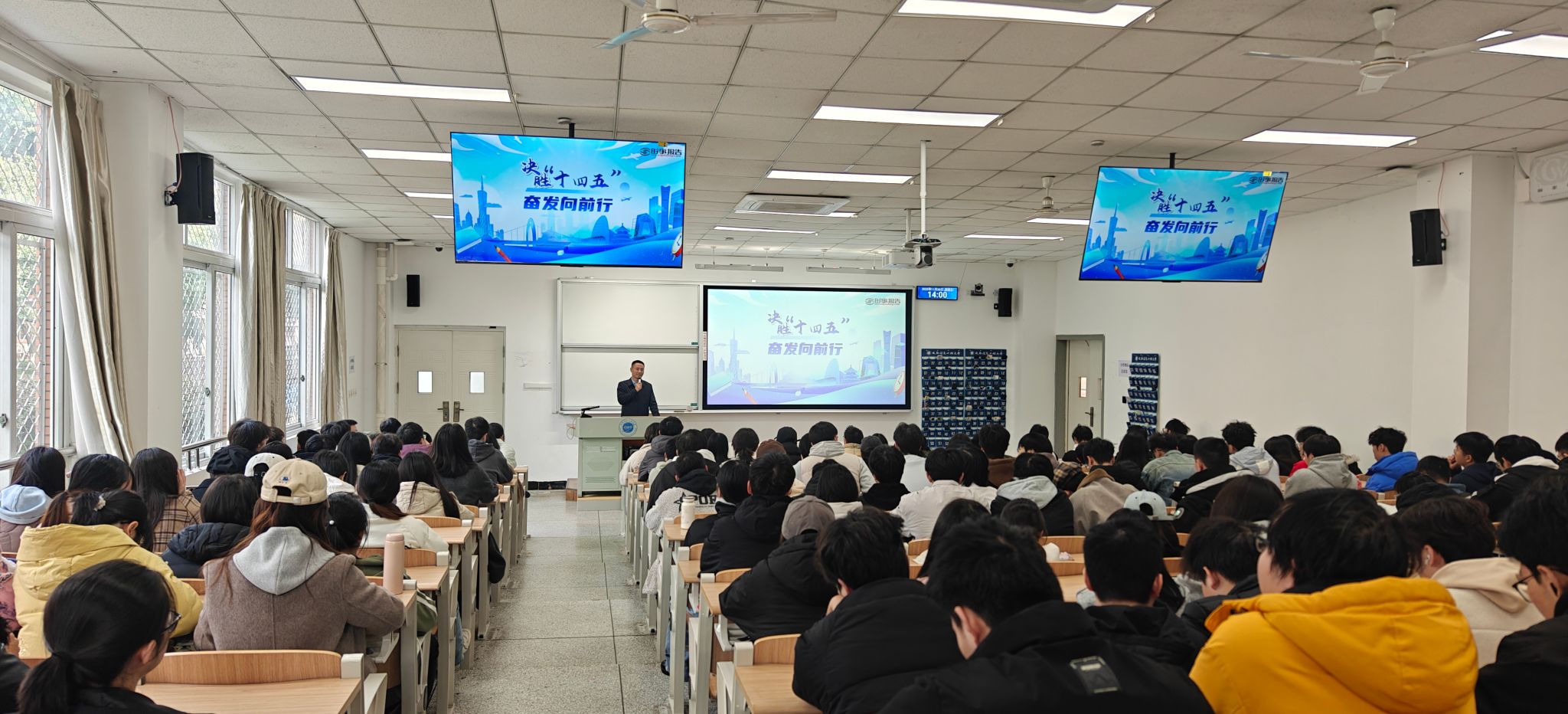 本次课程以“决胜‘十四五' 奋发向前行”为主题。陈权亮围绕国家“十四五”规划的核心要义与战略部署,结合当前国内外发展形势,深入浅出地阐述了规划实施的重要意义和取得的阶段性成就。他着重分析了新发展阶段对青年学子,特别是对计算机领域人才提出的新要求与新机遇,鼓励同学们要胸怀“国之大者”,将个人理想融入国家发展大局。